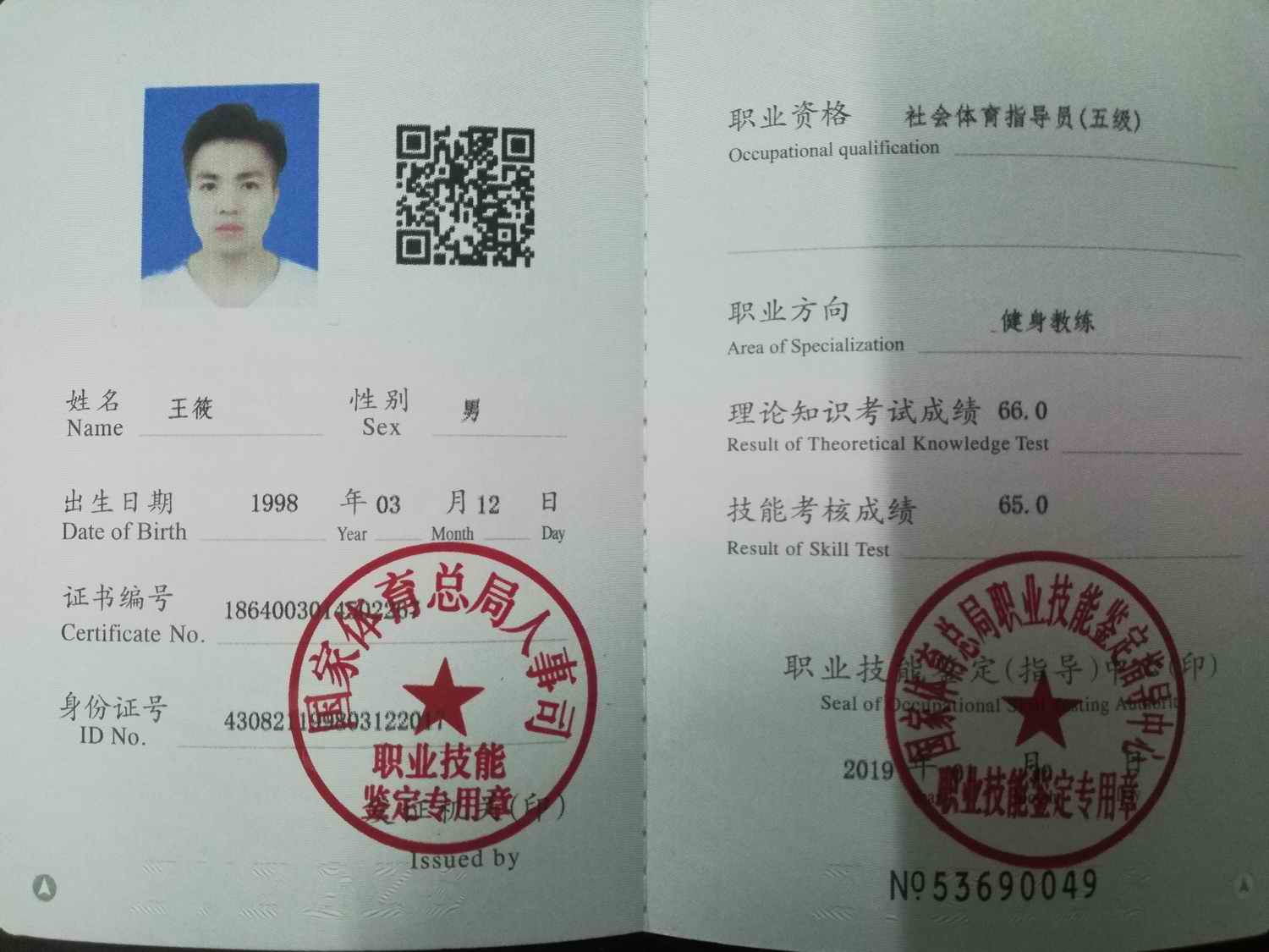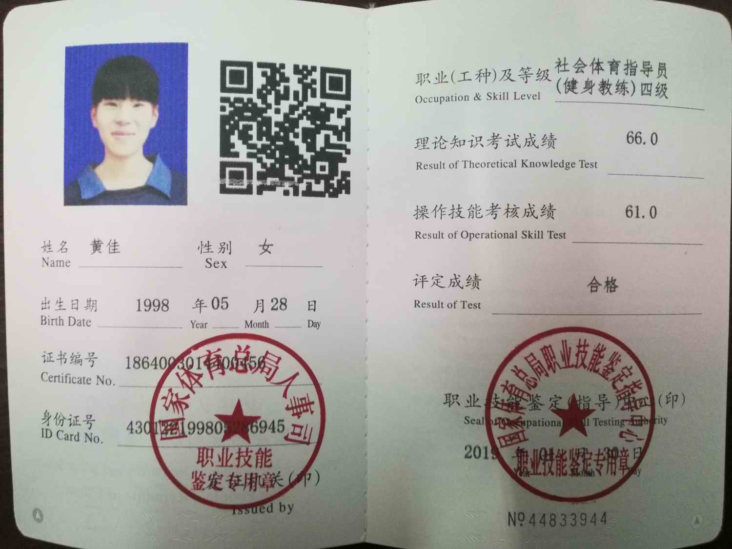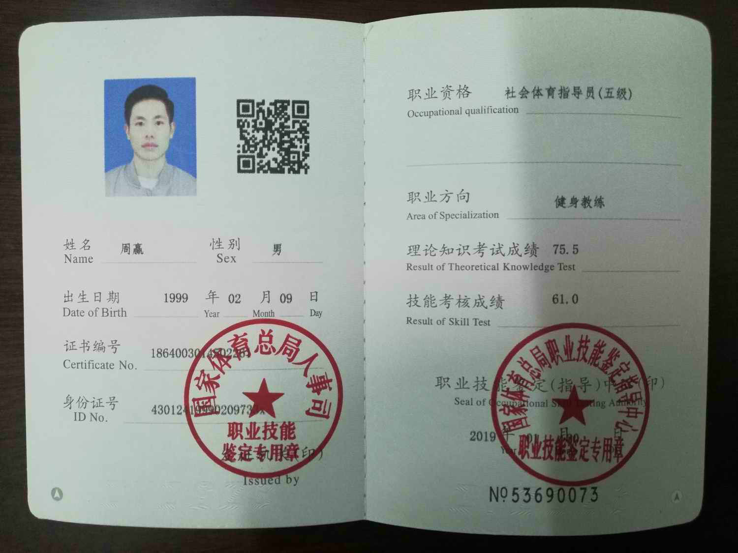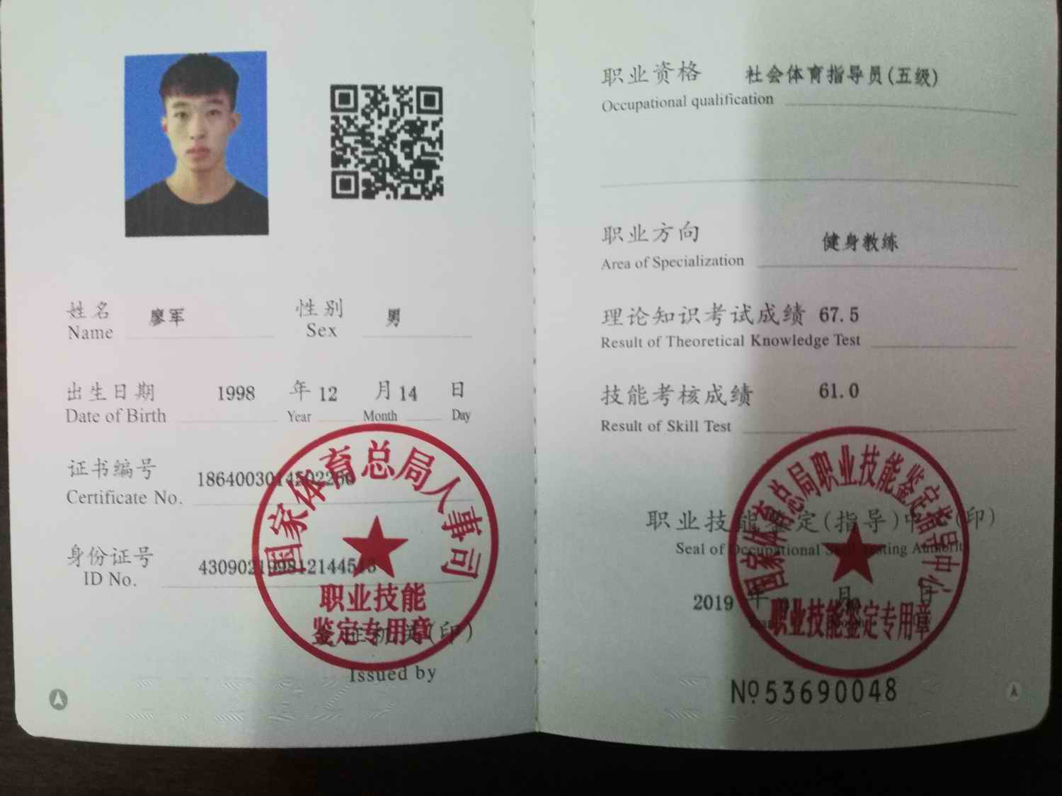 必赢线路检测3003no139名同学获健身教练国家职业资格证书