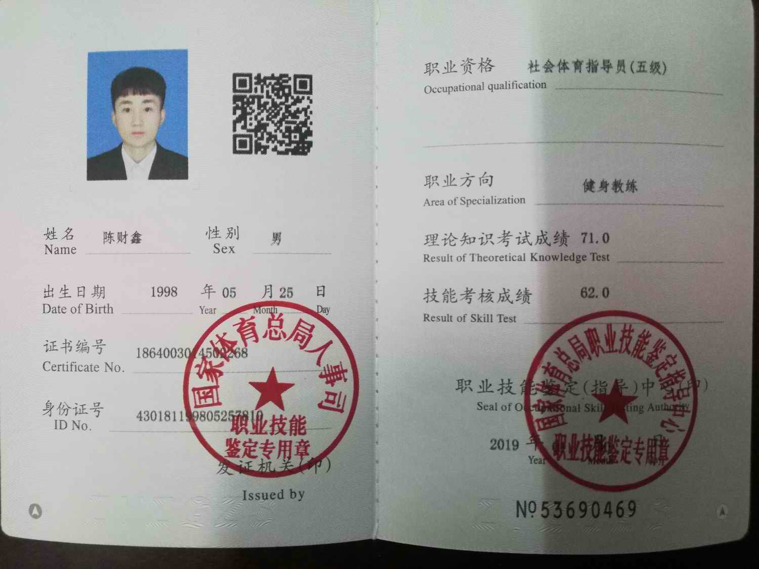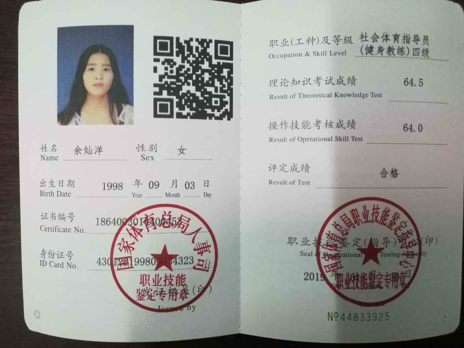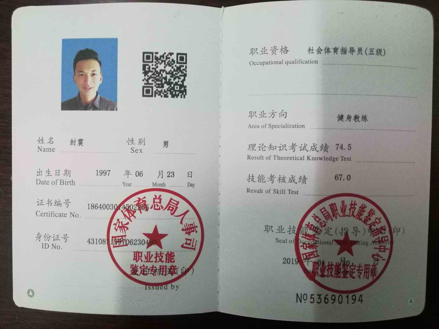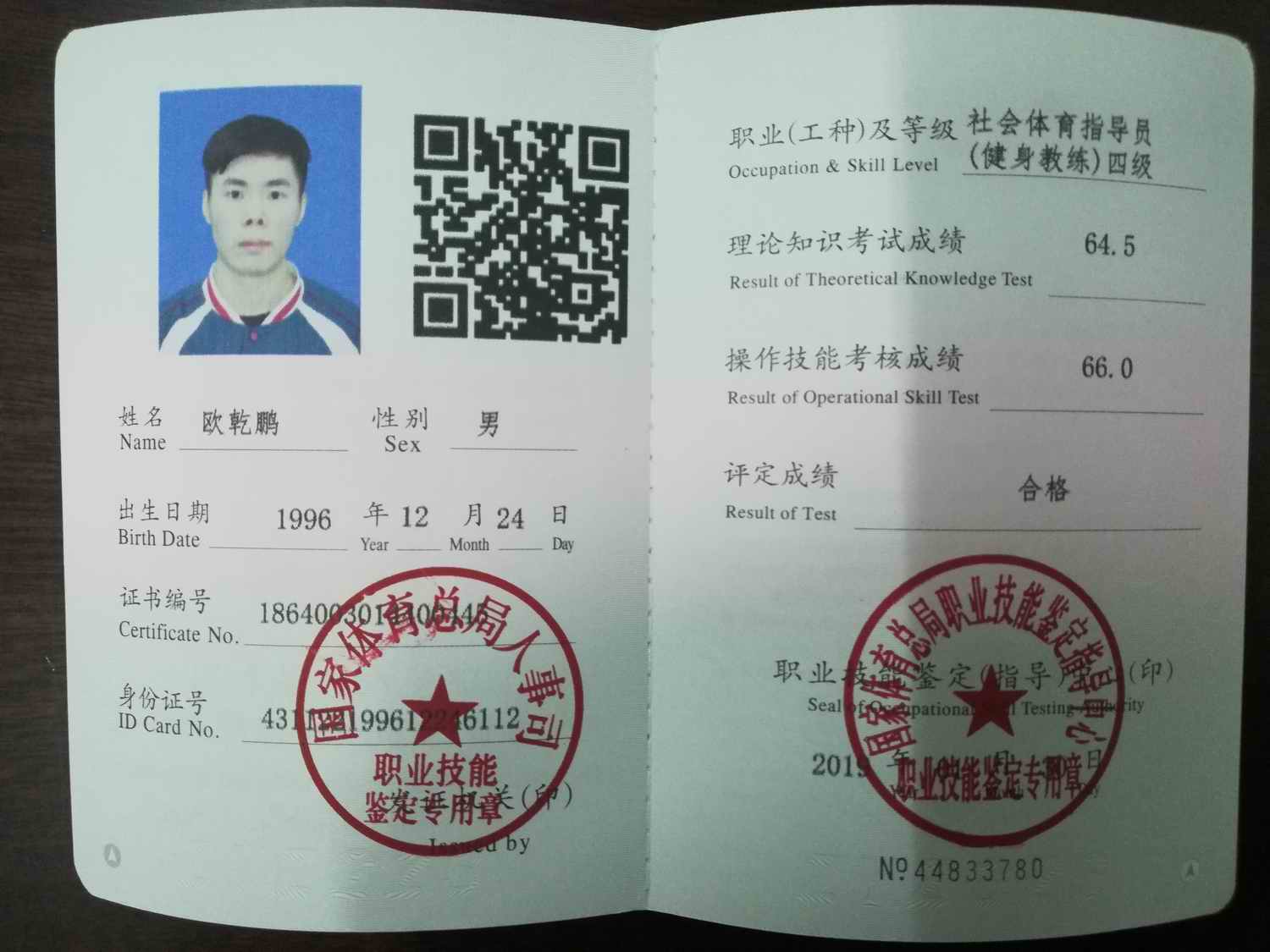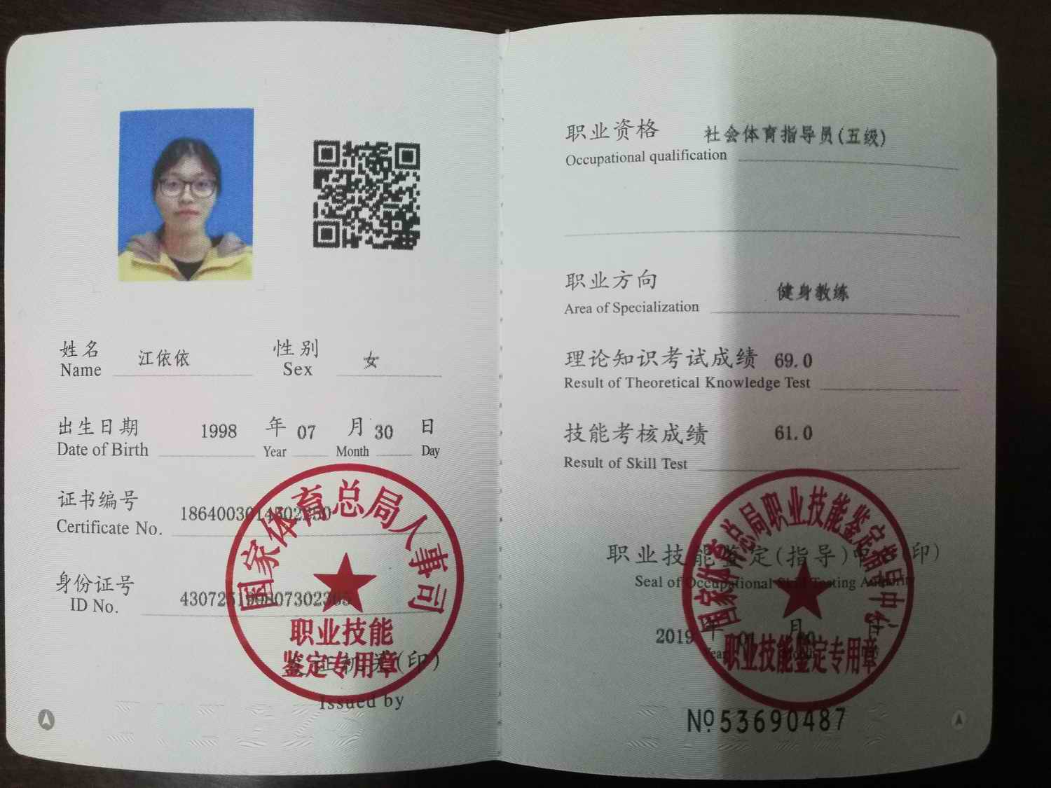 必赢线路检测3003no139名同学获健身教练国家职业资格证书